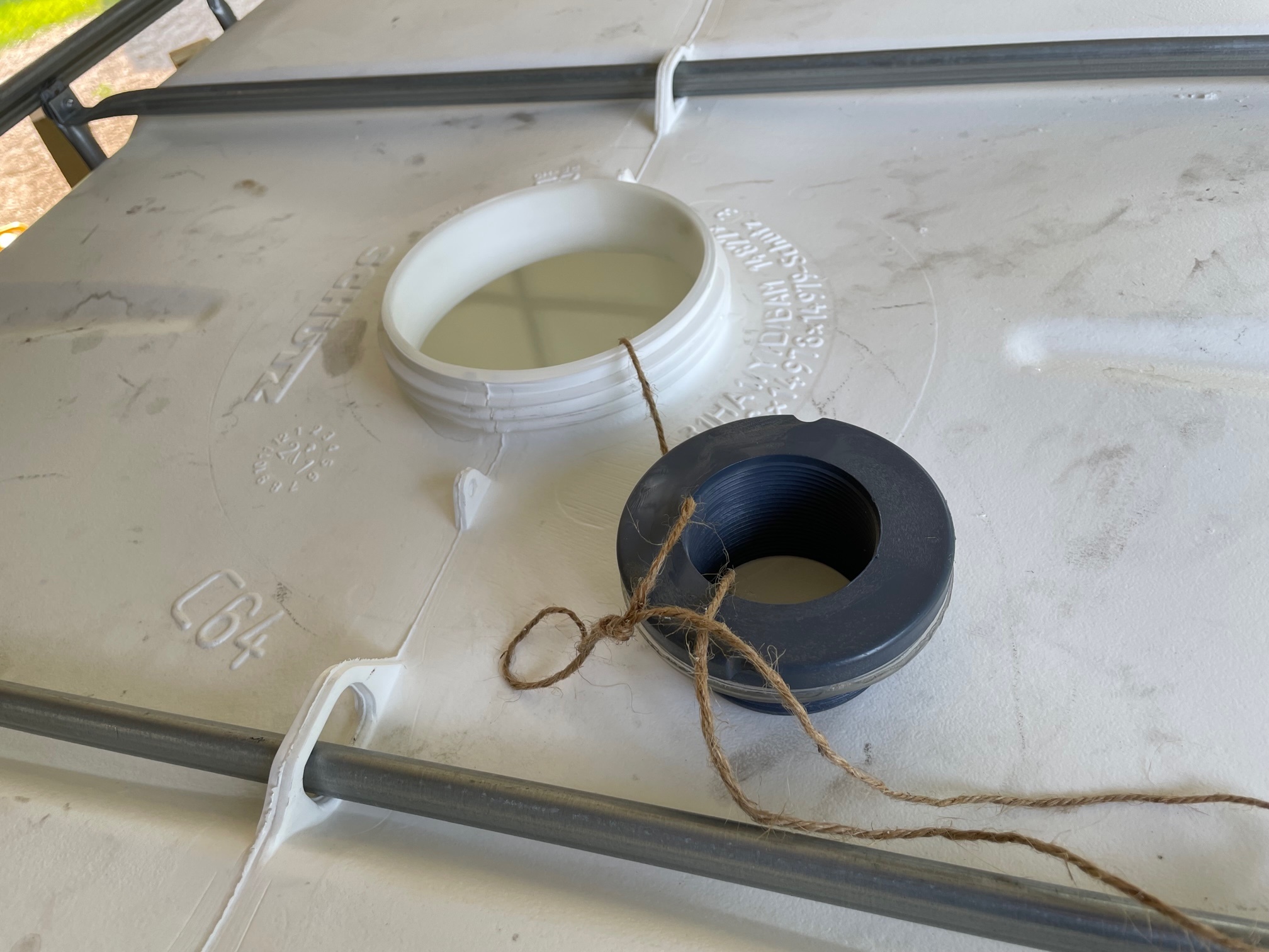 So I drilled holes towards the bottom in both tanks, aligned best I could. Installed 1 inch bulkhead fittings in both holes, installed 6 inch nipples, then used a compression coupling to join the two nipples.