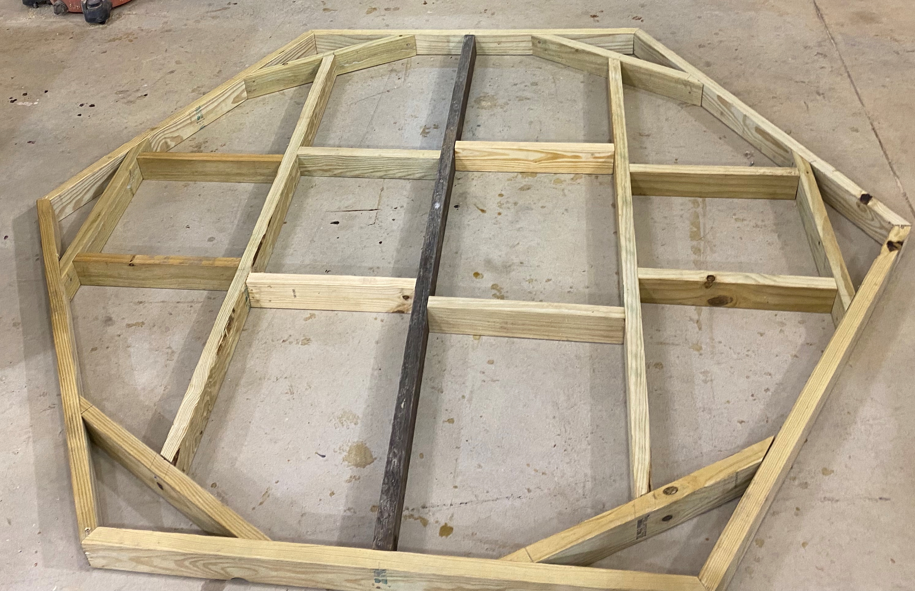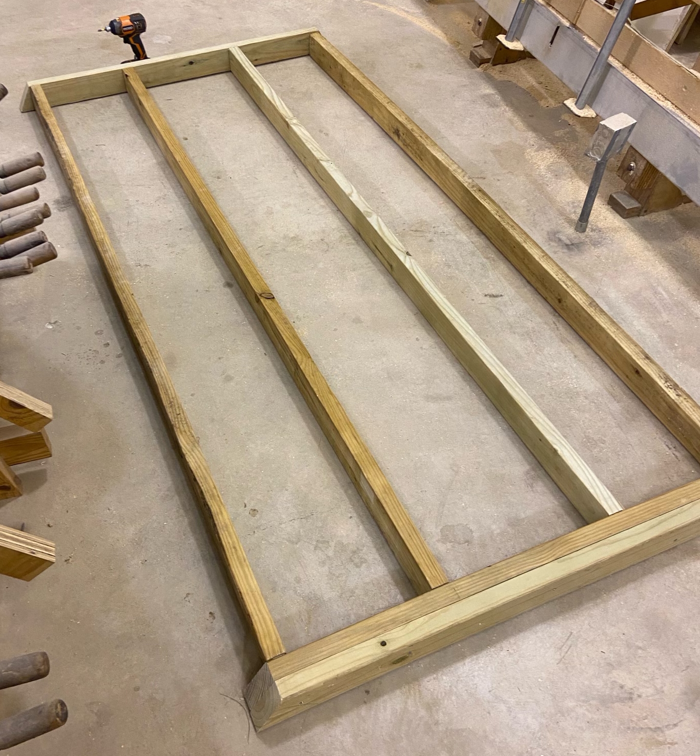 This is the base of the shed, the lowest level that will be sitting on blocks on the ground.